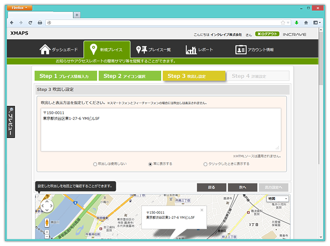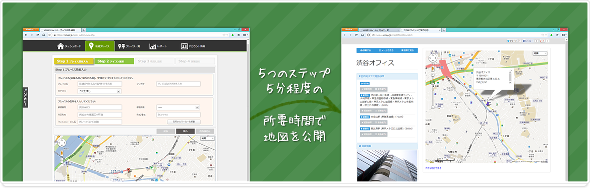 xmaps(クロスマップス)は、お店のアクセスマップを簡単に作成できるクラウド型地図ページ作成サービスです。