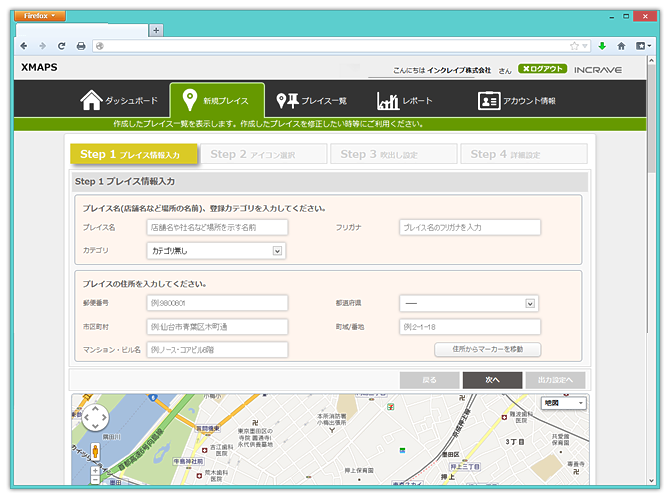 | 新規プレイス登録 | プレイス情報登録 | 住所や名称等、そのプレイスの情報を登録することができます。 |
